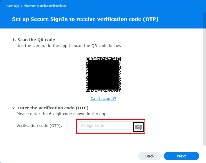With the code still in your clipboard, paste it in the “Verification code (OTP)” field. Click “Next” to continue.