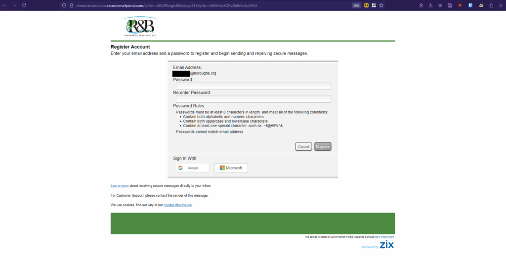 Messages from any person who’s company uses this will send emails from postmaster@THEIR_DOMAIN (Where THEIR_DOMAIN is their actual domain. So in this example it’s postmaster@norristown.org). The links should take you to URLs that look like this https://protect-us.mimecast.com/s/RANDOM_HASH (Where RANDOM_HASH is a long list of random characters). Also note that you will need to create a login in order to use this. Store these credentials in your Passwords.xlsx.
