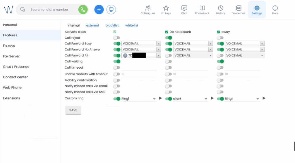 - Then in the drop-down beside the toggle, click on the drop-down to select it, then type in the phone number you would like to forward to